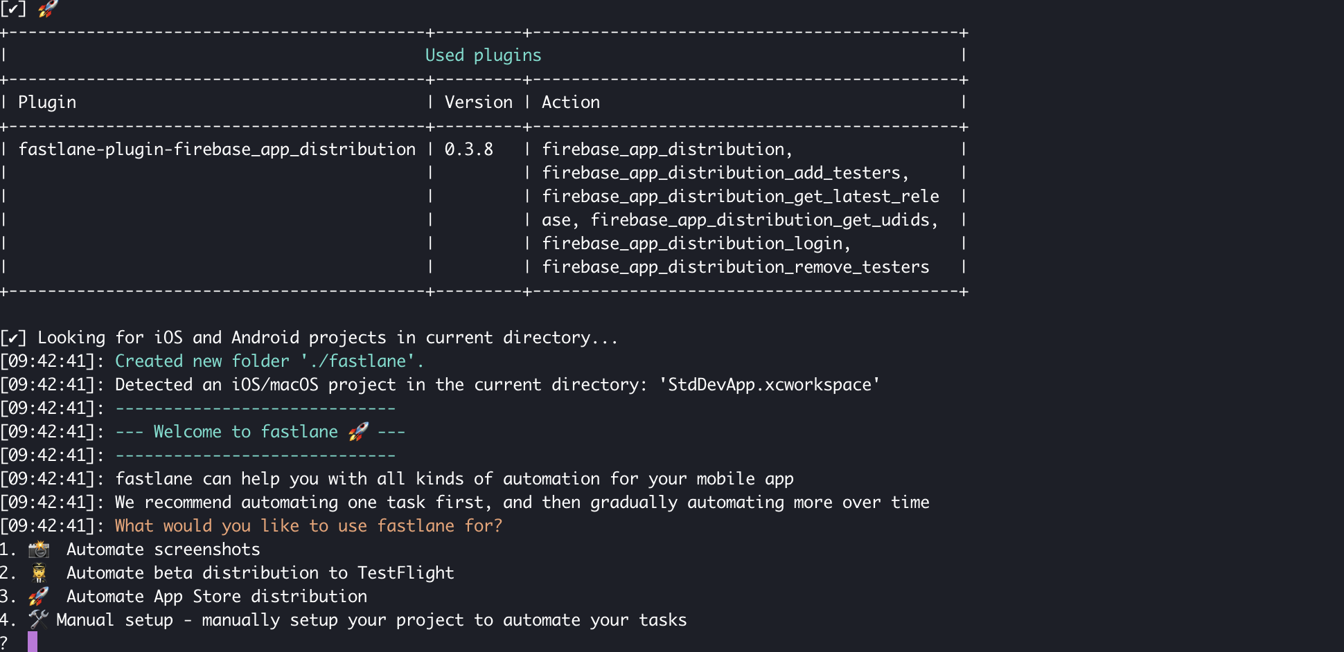 - fastlane init으로 적용을 완료하면 기본 구성으로 되어 있는 fastlane beta 를 실행한다.